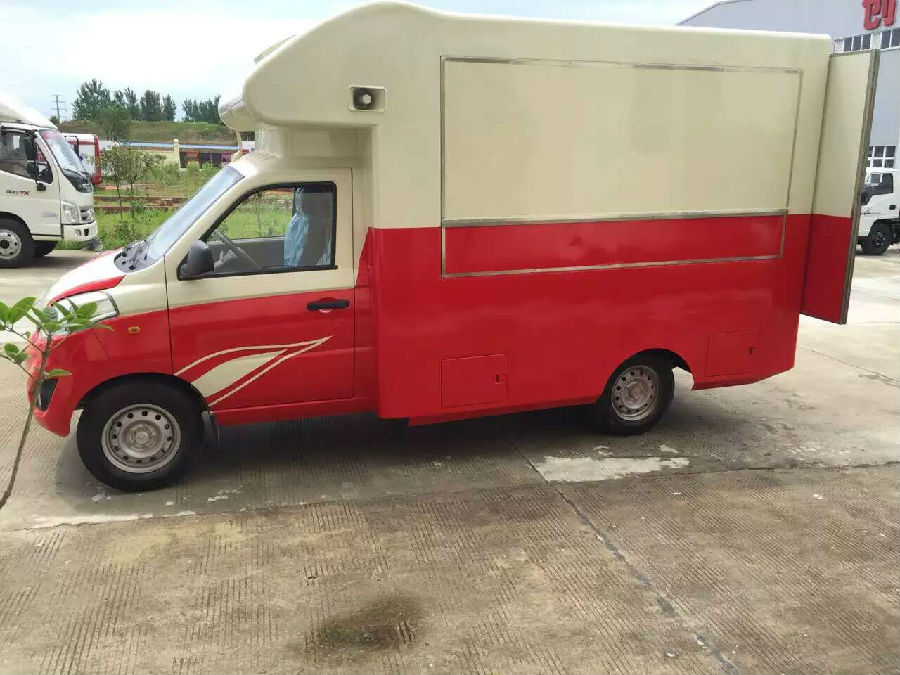 | 1,貨箱頂部封閉,不可開啟。可選裝逃生窗,不同前額頭造型。2,廂體后門上翻,選裝側開門,對開門;側板可上翻,可根據客戶需求選擇在車身兩側任意一面開啟售賣窗口;廂體下欄板在售貨作業時可展開平放以擴展貨臺面積。側板和后門均可選裝燈箱或LED屏,外觀顏色可選。3,側,后防護為裙板結構與車廂連為一體,后部下沿離地高450mm。4,隨底盤選裝駕駛室。 | |||