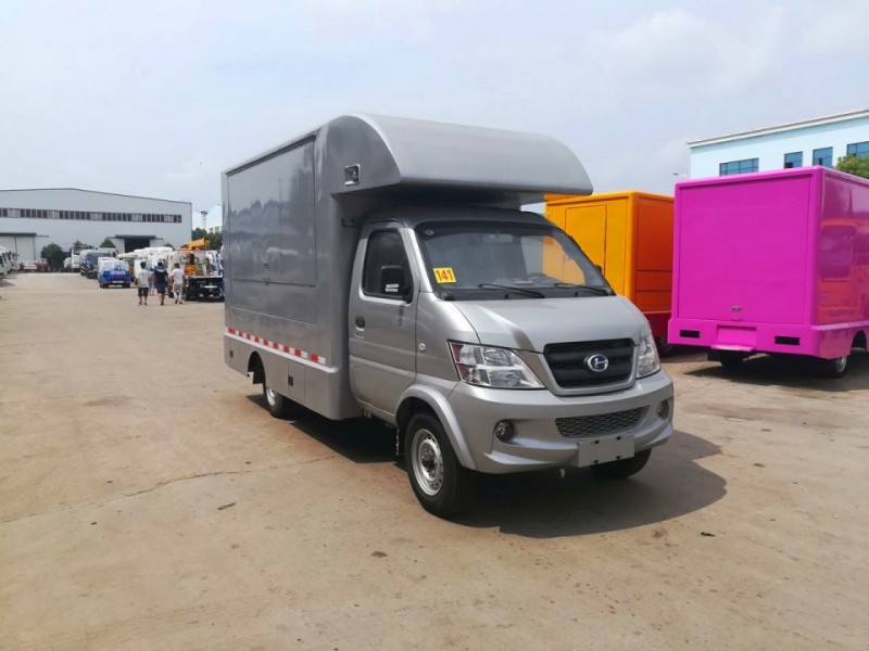 2.在車身兩側開啟售賣窗口;廂體下欄板在售貨作業(yè)時可展開平放以擴展貨臺面積;