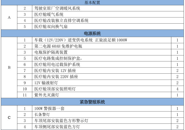 V348長(短)軸中頂監護型救護車改裝部分清單