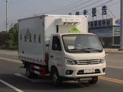 福田馭菱醫療垃圾車:1.貨箱頂部封閉不可開啟;2.隨底盤選裝帶前霧燈及晝間行駛燈造型,選裝不帶前霧燈及晝間行駛燈造型,可選裝黑