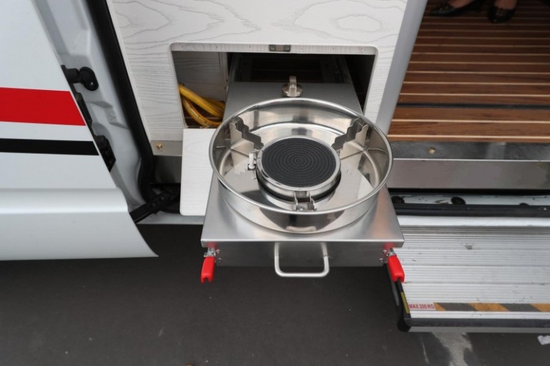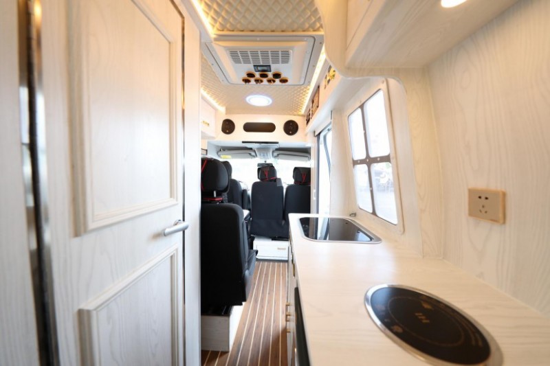 這款B型房車基于上汽大通V80打造,這輛車的尺寸為5785*2000*2872(mm),上藍(lán)牌,C照可駕駛。外觀上采用紅黑拉花裝飾看起來(lái)更加時(shí)尚動(dòng)感,這臺(tái)車動(dòng)力上搭載了上汽2.0Tπ柴油渦輪增壓發(fā)動(dòng)機(jī),國(guó)六排放,匹配6AMT手自一體變速箱,最大扭矩330N·m,就算是新手司機(jī)也能輕松駕馭它。車身外這臺(tái)車配備了遮陽(yáng)棚、照明燈、電動(dòng)踏步、外置淋浴頭、抽拉式燃?xì)庠睢⒑笈捞荨④図斝欣罴堋㈨斨?2V直流空調(diào)等。