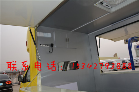 車廂內部兩側裝有折疊式吧臺前部頂端為雙開門儲物柜。