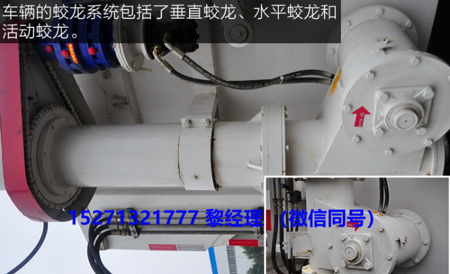 CLW5110ZSLD4型散裝飼料運輸車車輛的蛟龍系統包括了垂直蛟龍、水平蛟龍和活動蛟龍,三者之間完美的銜接在一起,可以更好的完成出料過程。